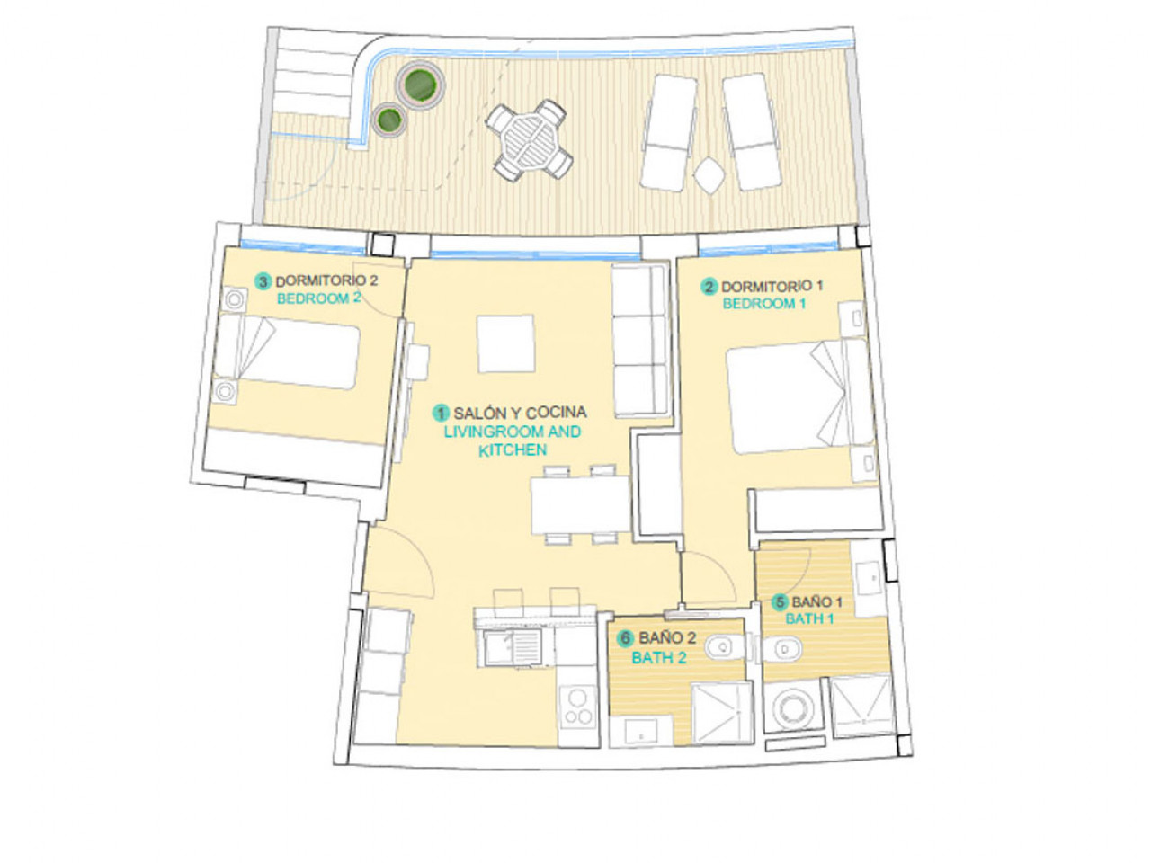 The resort is located five minutes away from the beach on foot, and 10 minutes by car from the town of Águilas. There are four golf courses close by and it is only 60 minutes by car from the city of Murcia and airport as well as 40 minutes from Alicante airport.