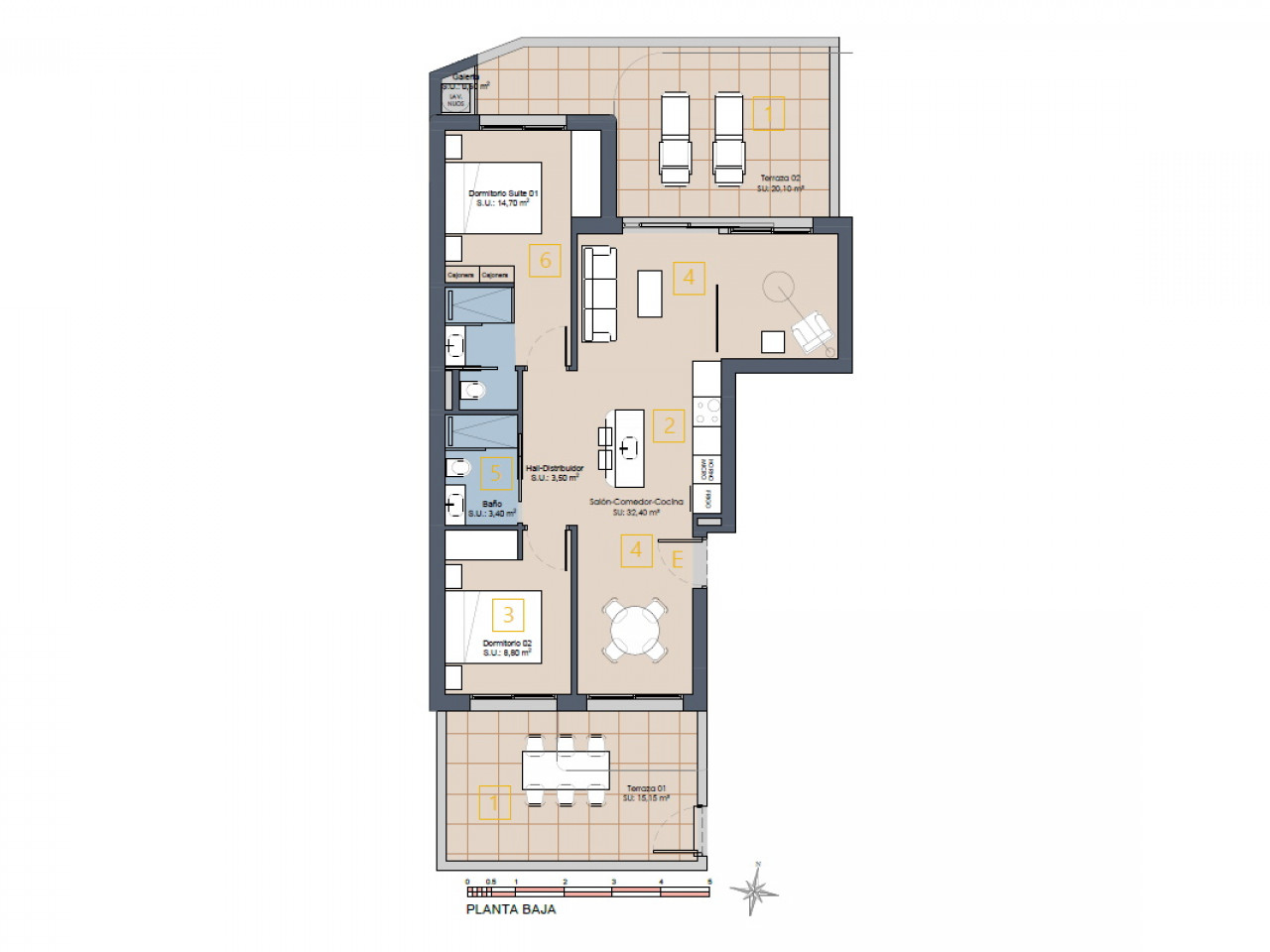 The ground floor apartments have private large terraces, the middle-floor units with terraces and Penthouses with two terraces, private solarium and panoramic views. The unbeatable location offers nice views to golf course and Mar Menor.