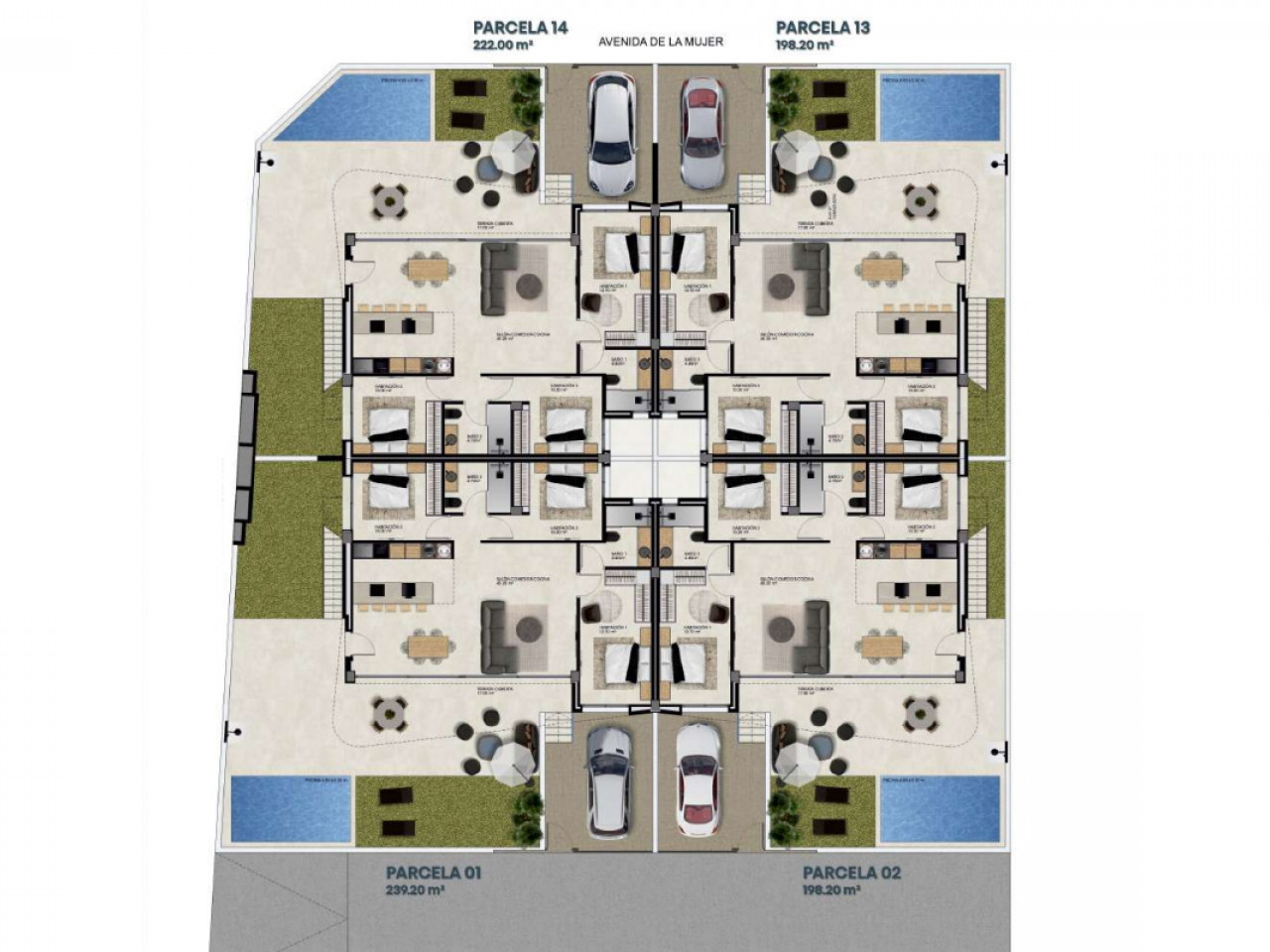 Each has a private plot with a swimming pool and parking space, and offers the option of adding a solarium of approximately 50 m², equipped for a barbecue area and jacuzzi. The complex stands out for its quality, energy efficiency, and design focused on enjoying the climate and comfort year-round.