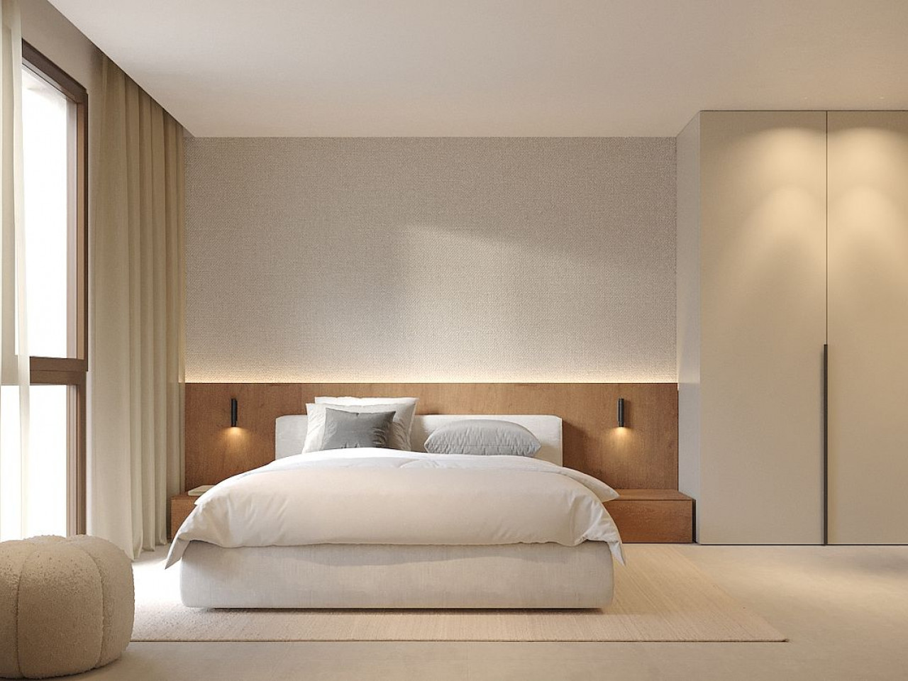 Each home has been designed to maximize natural light and the connection between indoors and outdoors. The houses feature three double bedrooms, including a master bedroom with an en-suite bathroom and open dressing room, as well as a second full bathroom. The heart of the home is a spacious living-dining room with an integrated kitchen and breakfast bar, spanning over 45 square meters, which opens to the outside through a spectacular sliding glass door over 8 meters long. This opening creates a continuous indoor-outdoor space of over 80 square meters, seamlessly integrating the terrace and private pool into the daily life of the home.