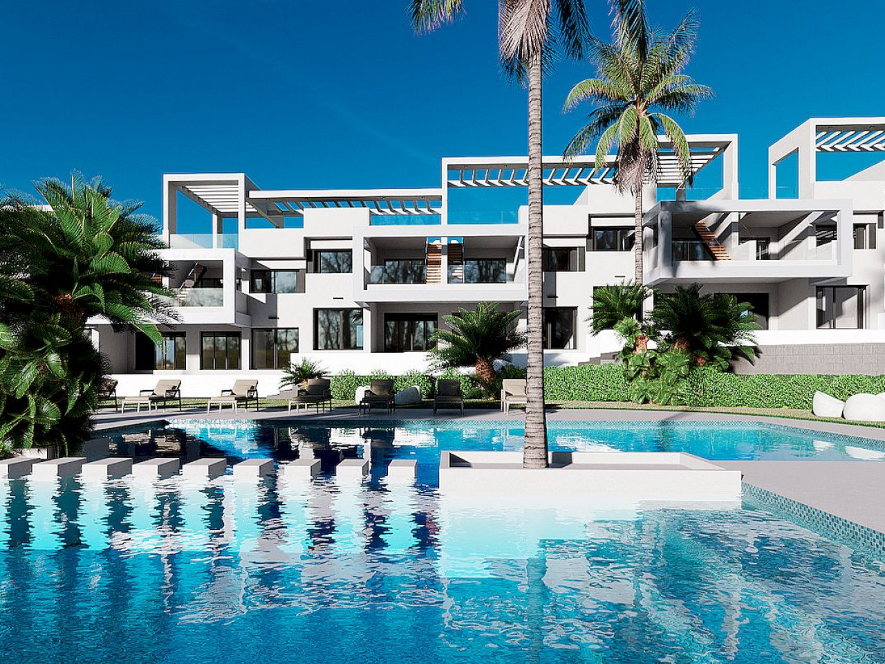 The townhouses have three bedrooms and two bathrooms with ample terraces and private swimming pool.