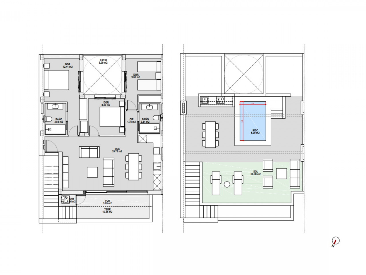 The development is in an outstanding location within a large residential area of Pilar de la Horadada, Alicante, next to ‘la Rambla’ and surrounded by all services, sports facilities and near several golf courses. This is a fabulous place to live for families due to the easy access to all kinds of services.