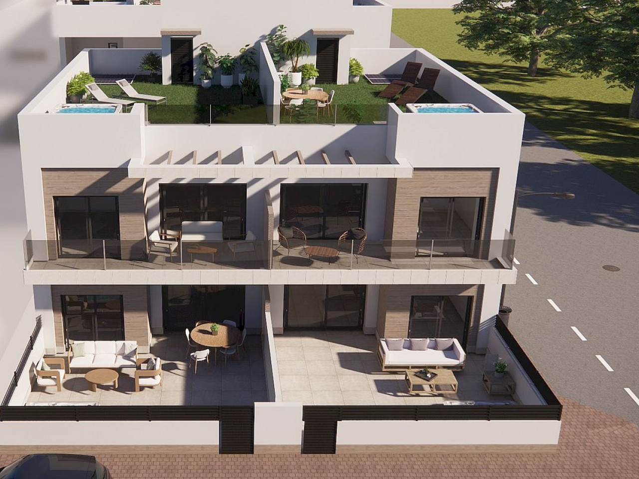 Every home includes a Jacuzzi and a private parking space in the underground garage, providing security and comfort. The residential design focuses on practicality and modern living, offering a peaceful environment in a well planned new urban area of Rojales. This new residential area allows easy walking access to all daily services such as supermarkets, restaurants, banks and pharmacies, making it ideal for both permanent living and holiday use.