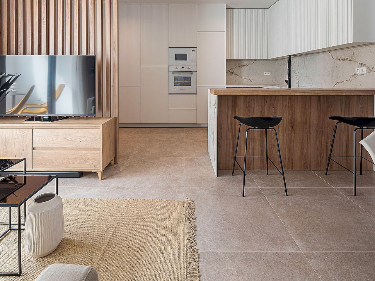 This 2-bedroom, 2-bathroom maisonettes are designed with bright living space that seamlessly connects to the dining area and a fully fitted kitchen. Large sliding glass doors let in natural light, creating an open and inviting ambiance. The layout includes two spacious bedrooms, with the master bedroom boasting an en-suite bathroom, as well as a modern family bathroom. On the top floor a private rooftop solarium, accessible from the kitchen, provides an ideal spot for relaxation or entertaining.