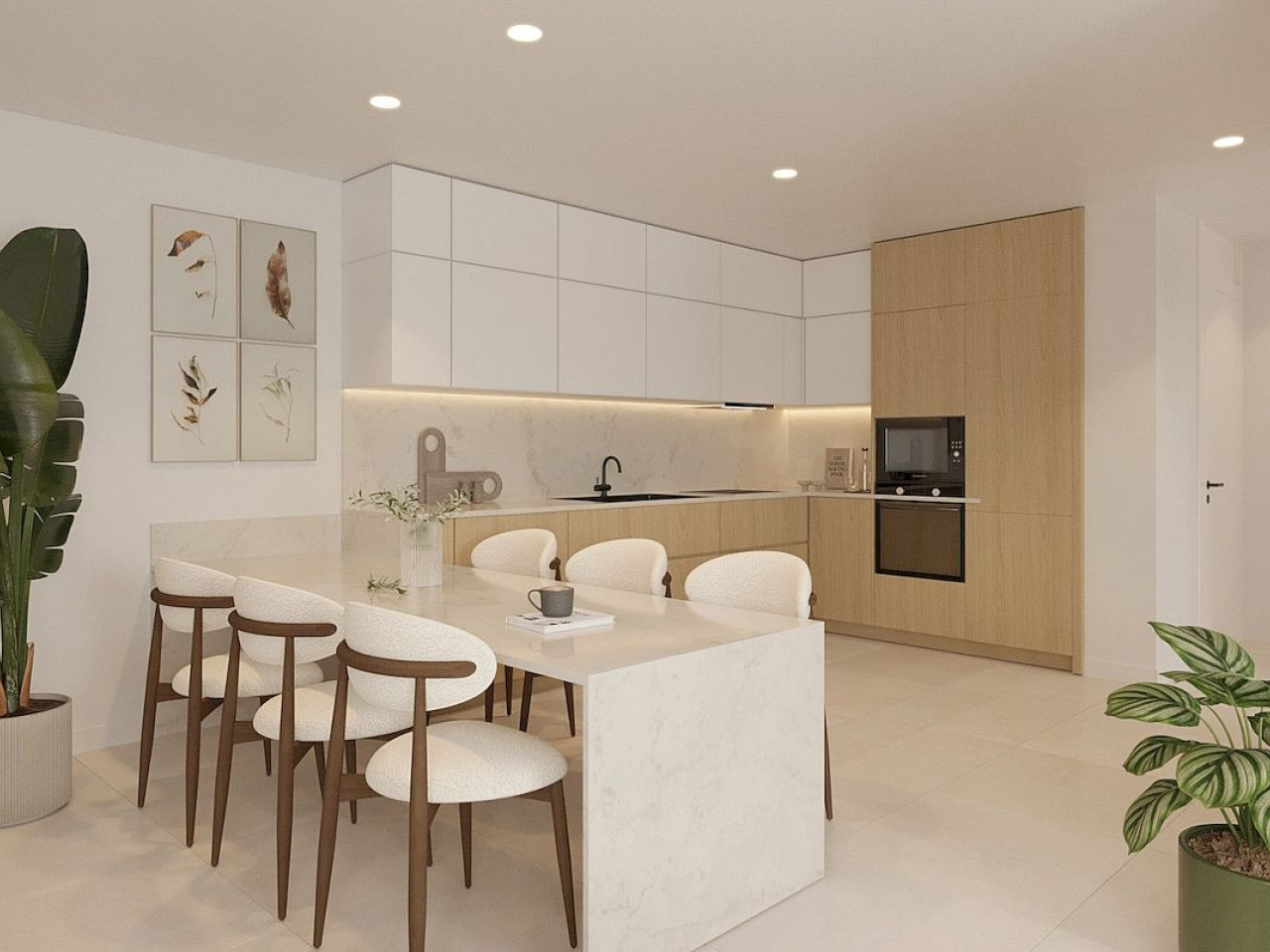There are different layouts to suit your lifestyle; the ground-floor maisonettes with 3 bedrooms and 3 bathrooms, including a master bedroom with en-suite on the main floor, open-plan living room with kitchen, guest toilet, and spacious terrace. A staircase leads to the lower ground level with 2 additional bedrooms, 2 bathrooms, laundry room, and patio. Top-floor maisonettes consist of 2 bedrooms and 2 bathrooms, open-plan kitchen with large living area, terrace and private solarium, perfect for enjoying the views and the Mediterranean sun.