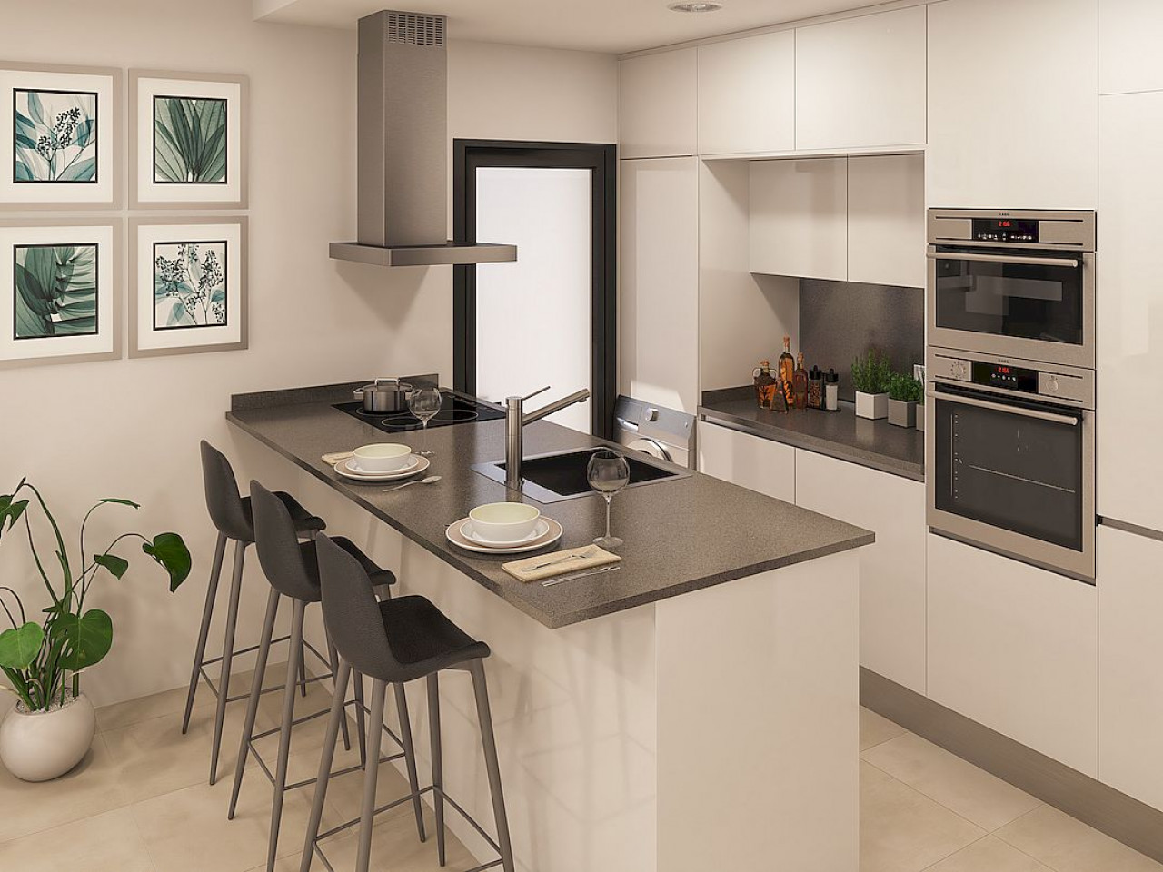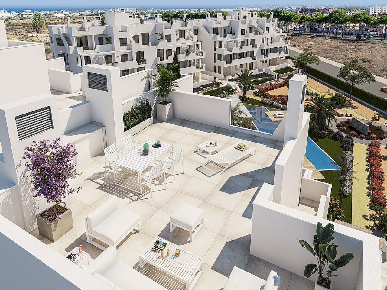 Levansur Home Five- Santa Rosalía is a luxury complex composed of 60 apartments, distributed in 4 buildings, with terraced area on the ground, first and second floors, and ample solarium with summer kitchen on the penthouses, to enjoy our fantastic sunny weather all year long.
