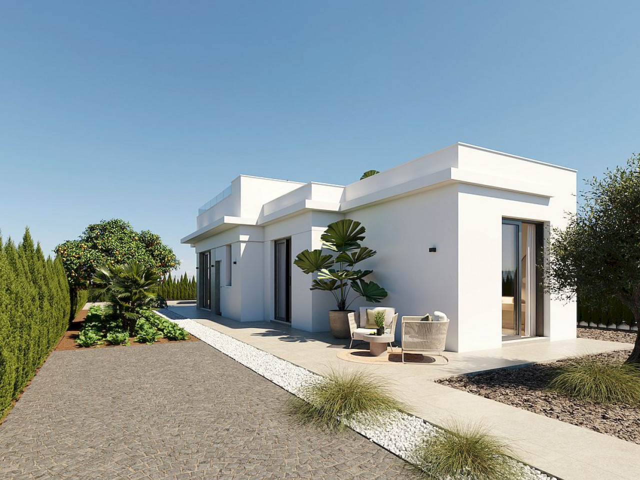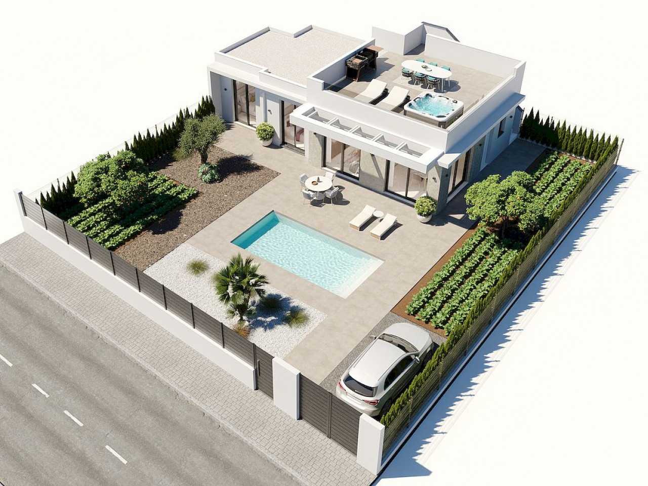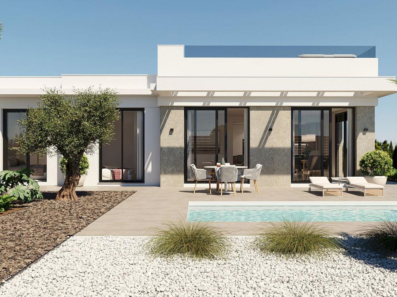New-build modern villas in the prestigious Hacienda del Álamo Golf Resort, a gated community in the region of Murcia that combines tranquility, security and a full range of services.