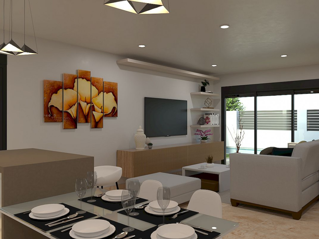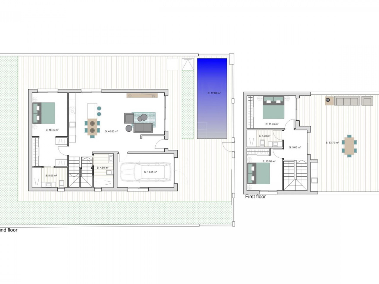 Built over two floors, the villa features 3 spacious bedrooms and 3 bathrooms, designed for comfort and functionality. On the ground floor, the villa offers an open plan living and dining area with a modern kitchen and direct access to the terrace, swimming pool with waterfall and closed garage. This level also includes a large bedroom with walk in wardrobe and en suite bathroom, plus an additional guest bathroom. The first floor features two bedrooms that share a bathroom and a generous uncovered terrace of 53 m2 with summer kitchen, ideal for relaxing, entertaining and enjoying the Mediterranean climate. This self promotion villa offers a unique opportunity to personalize both the interior and exterior to suit your lifestyle.