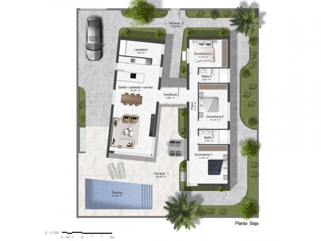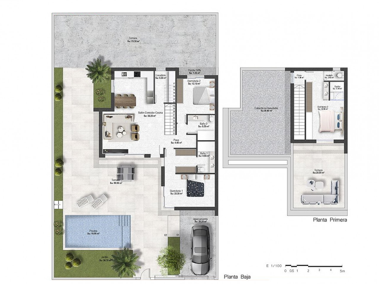 Only 15 minutes by car from the centre of Murcia capital, you can enjoy the tranquillity and security offered by the golf course that has 18 holes and the comfort of living close to all services. In this resort you will enjoy the peaceful tranquility of the area with a stunning environment around you. With everything you need within reach, we achieve quality of life, fresh air and open spaces.