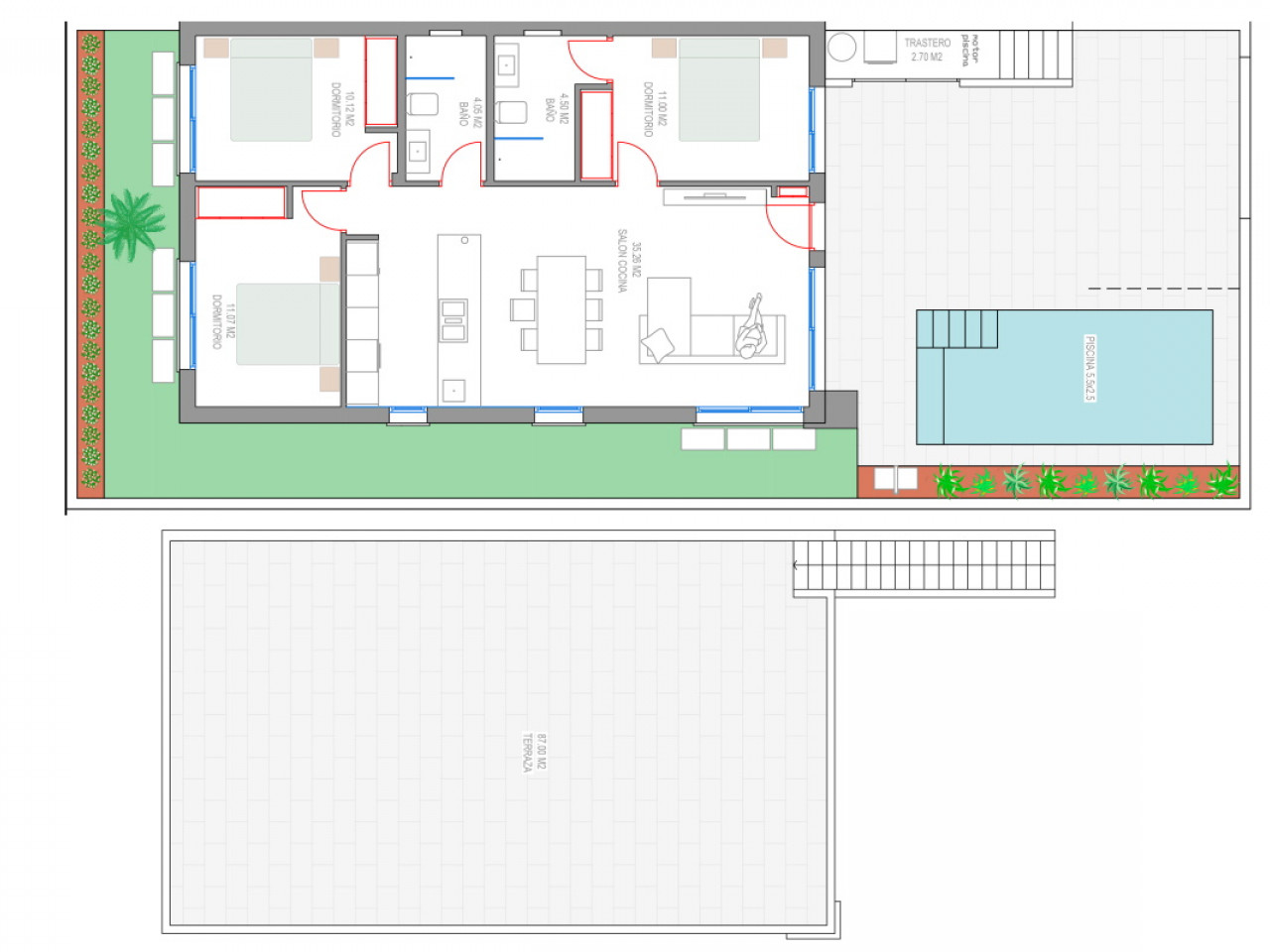 Alejandra XI offers you independent and semi-detached villas on one level. Each villa has 3 bedrooms and 2 or 3 bathrooms, and a distribution designed to make the most of natural light and ventilation. In addition, the open kitchen is perfectly integrated into the living room, creating a spacious and bright environment.