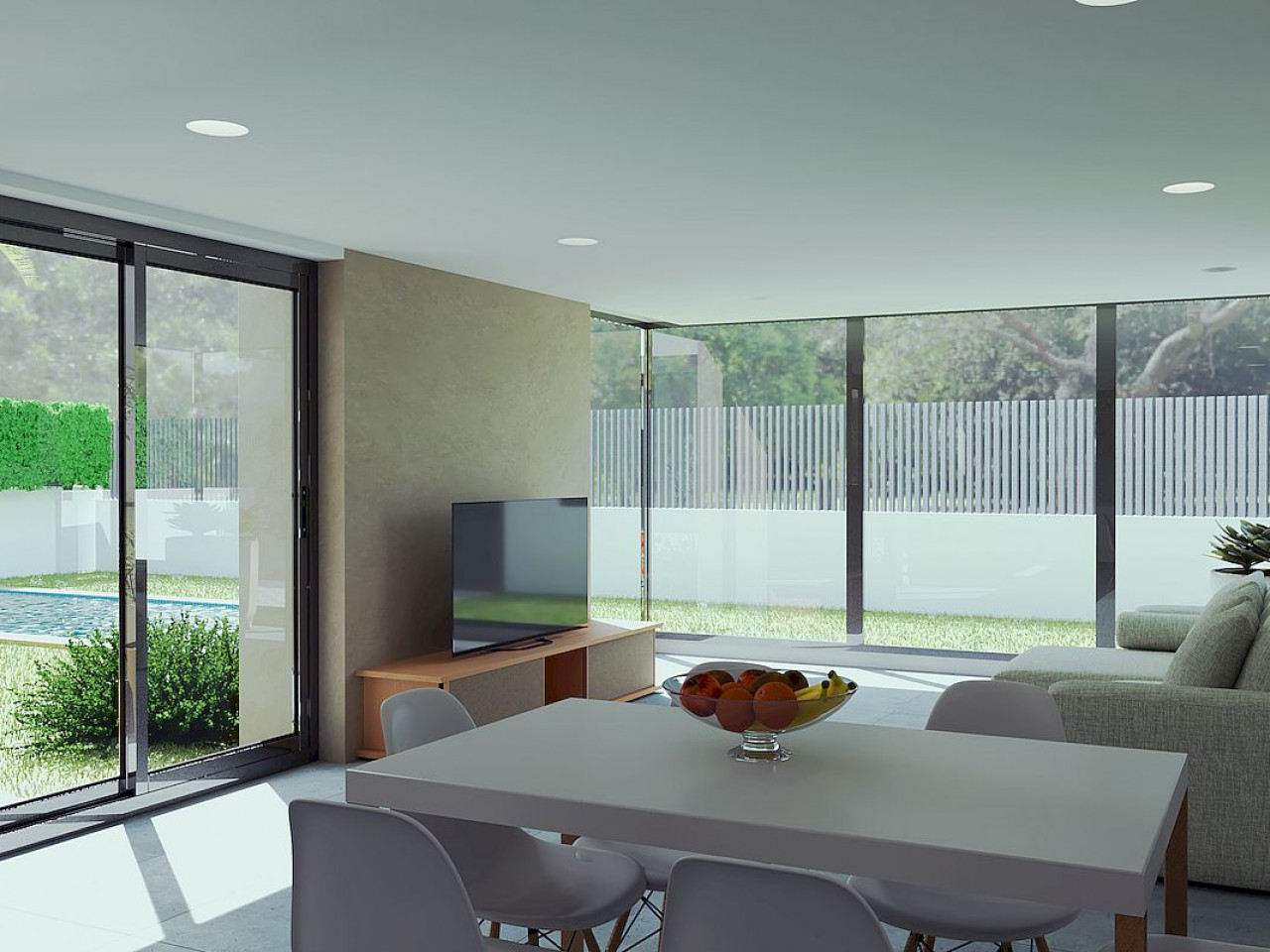 Levansur Home Seven is a luxurious complex of 4 villas with individual swimming pool, basement and solarium on a plot of 400 m2 located in Santa Rosalía Lake.
