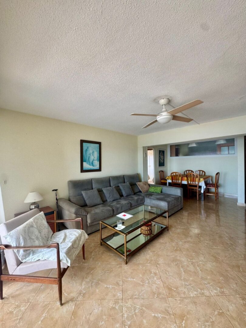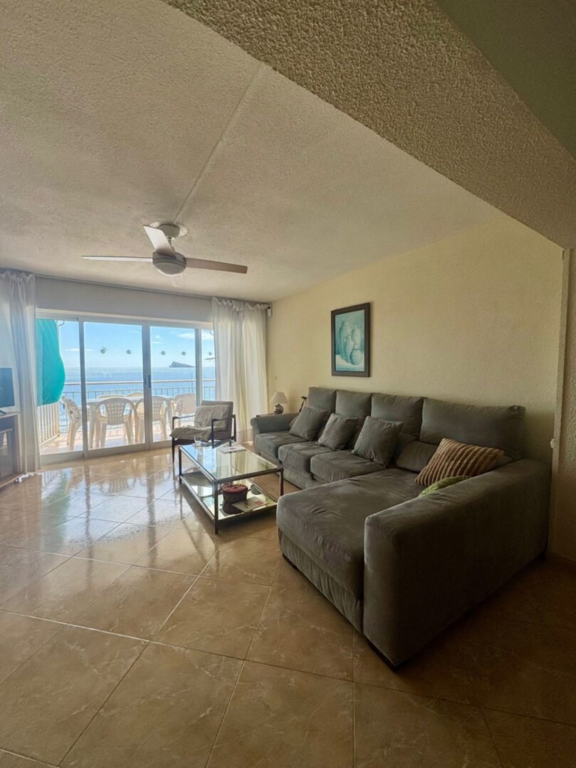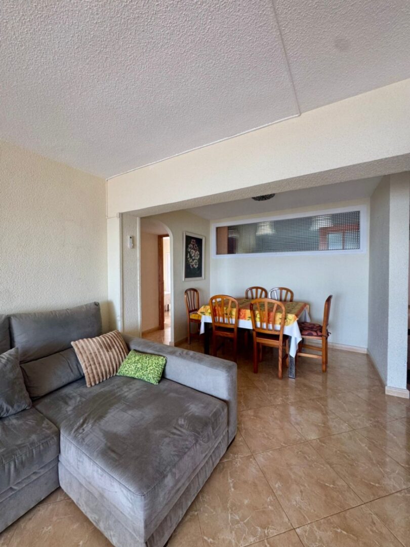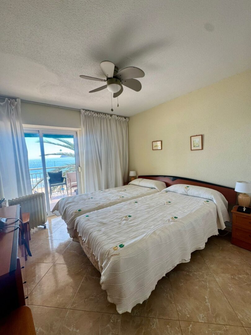 The apartment has three bedrooms (all with sea views), two bathrooms with windows, and a very spacious livingdining room, all in a renovated and wellmaintained space.