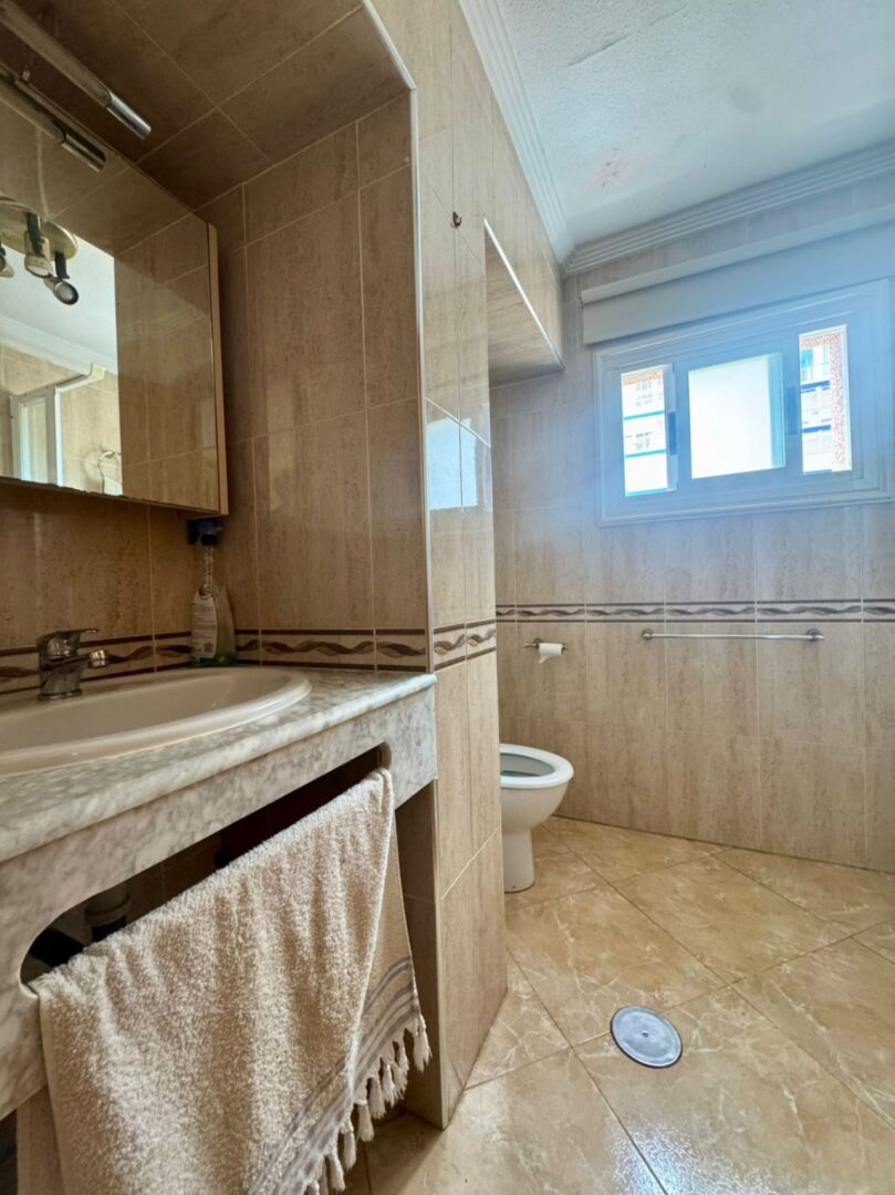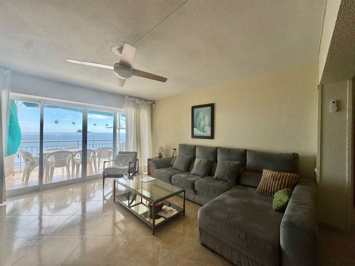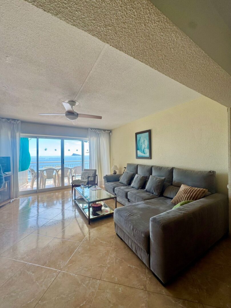 The apartment has three bedrooms (all with sea views), two bathrooms with windows, and a very spacious livingdining room, all in a renovated and wellmaintained space.