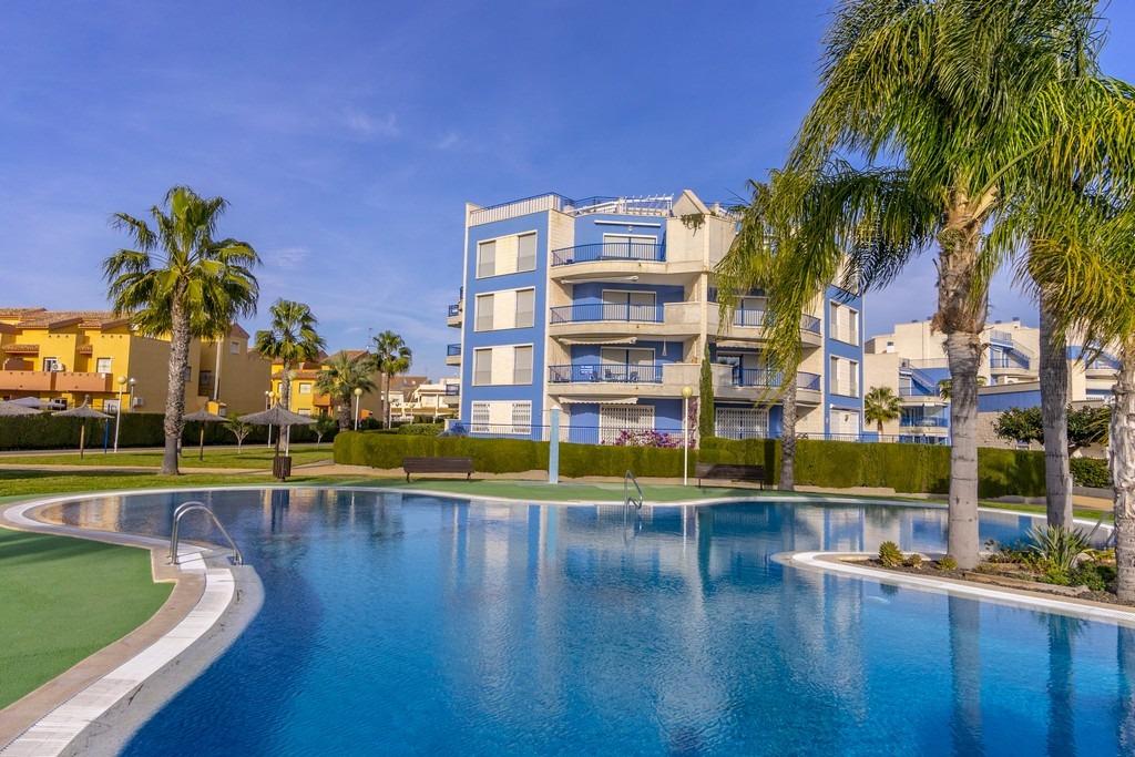 This spacious and bright apartment is located in the exclusive Aguamarina residential complex, Punta Glea, on the beachfront, with direct access to the seafront promenade. Located on the first floor, it faces southeast to enjoy the sun almost all day long. With a surface area of 78 m2, it has a very convenient layout, offering comfort and functionality.~The apartment has two large bedrooms, each with built-in wardrobes, providing plenty of storage space, and two full bathrooms.~The separate kitchen is fully equipped and includes a laundry room. A bright living-dining room and a large terrace, accessible from the living room and the master bedroom, are the perfect place to enjoy views of the complex’s gardens and the sea. The apartment is sold partially furnished and has ducted air conditioning. The apartment also comes with a parking space in the underground garage.~The residential complex has a spectacular swimming pool, surrounded by gardens, ideal for enjoying sunny days and relaxing just steps from the sea. An unbeatable location, with the convenience of being right on the beach and with all amenities within walking distance.~