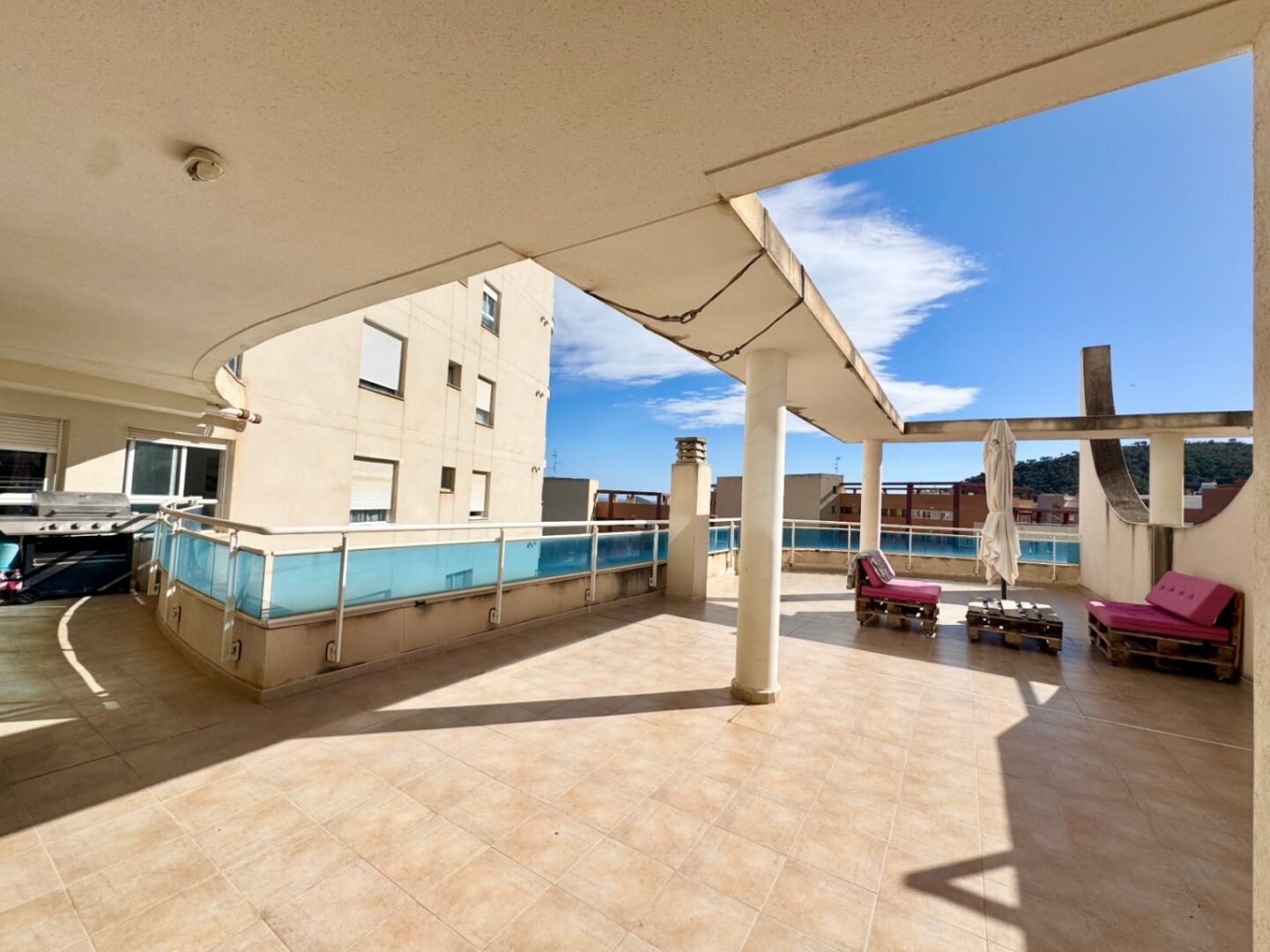 The balcony is simply gigantic, an extraordinary outdoor space to host family gatherings, enjoy meals with friends, sunbathe all day long thanks to its excellent orientation, and contemplate beautiful panoramic views that provide an incomparable sense of freedom and wellbeing.