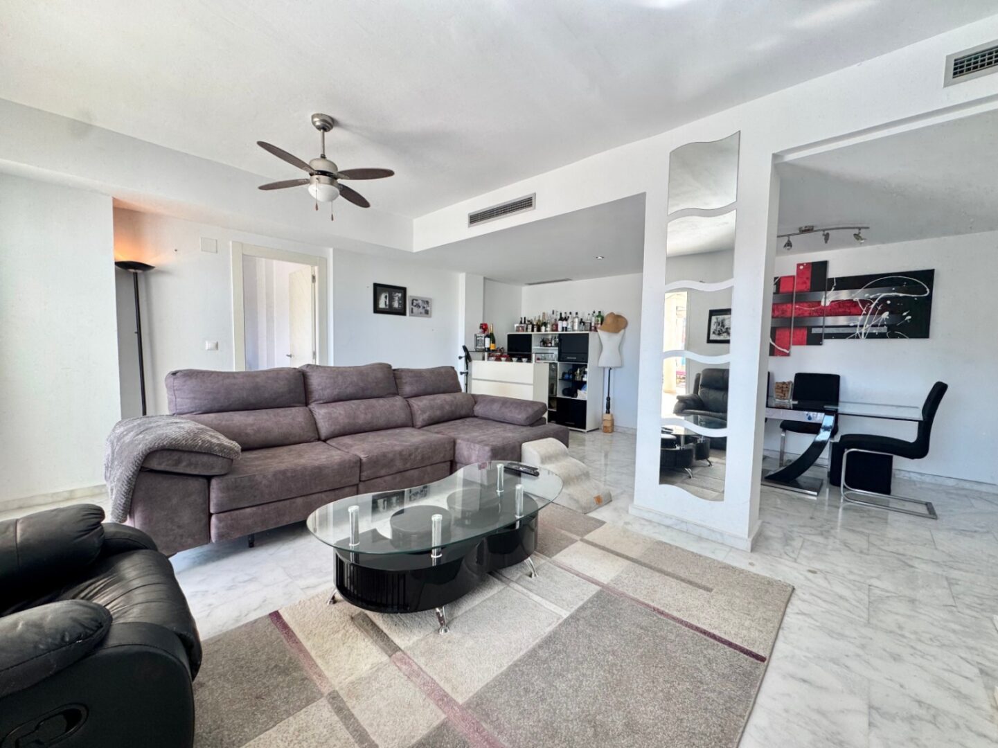 Originally, it had four bedrooms, but one was removed to create a much larger and more comfortable living room, thus achieving a spectacular living area with greater spaciousness and a sense of space. It currently features 164m2 perfectly distributed in three spacious bedrooms, two full bathrooms, and a very large kitchen ideal for daily use and for those who enjoy cooking comfortably.