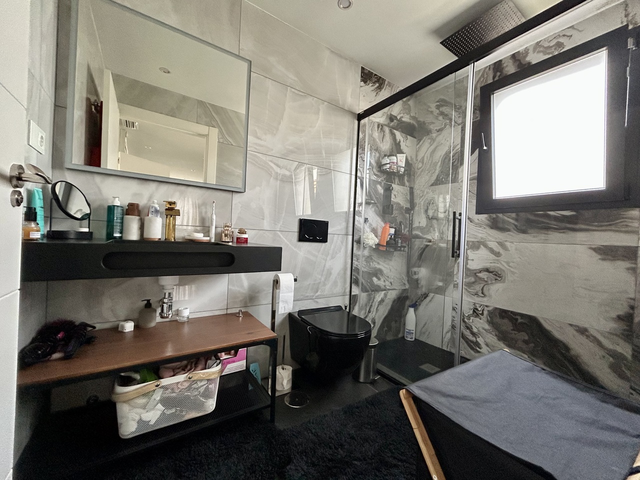 Upstairs, a dedicated gaming and leisure area opens onto a large, sun-drenched terrace — a perfect retreat for relaxation or entertaining under the Mediterranean sky. This level also hosts two further bedrooms and two bathrooms, offering comfort and privacy for family and guests alike.
