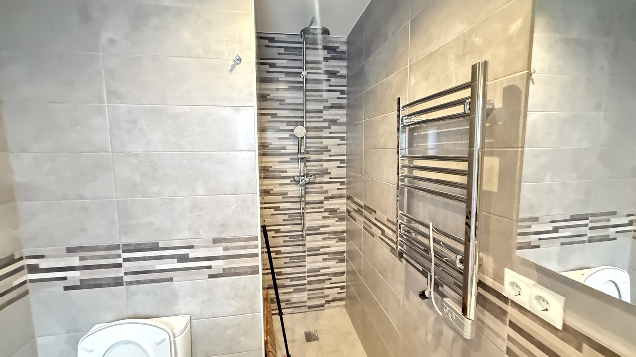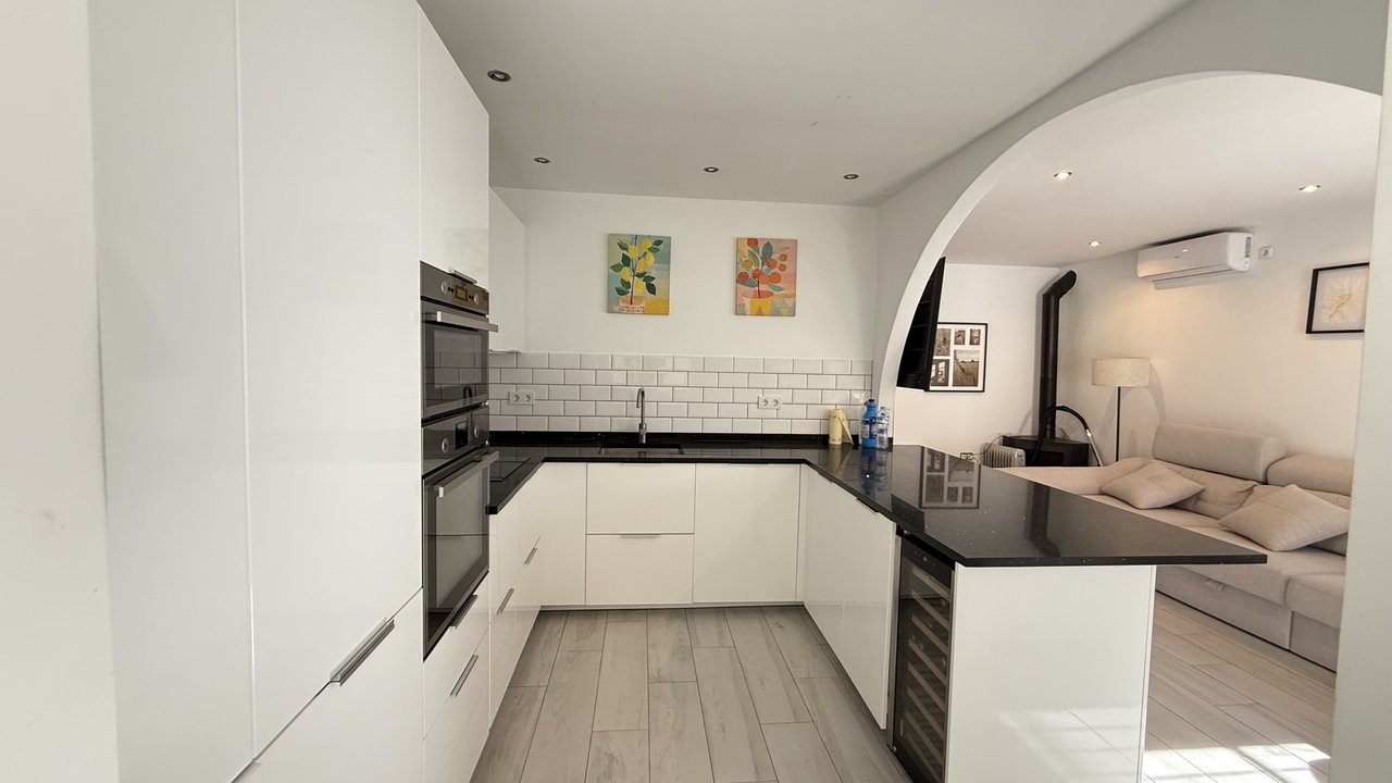 Inside, you’ll find a large and bright open-plan living area with a fireplace that makes the space feel warm and welcoming all year round. The brand-new fully equipped kitchen flows naturally into the living area, making it ideal for both everyday life and entertaining family or friends.