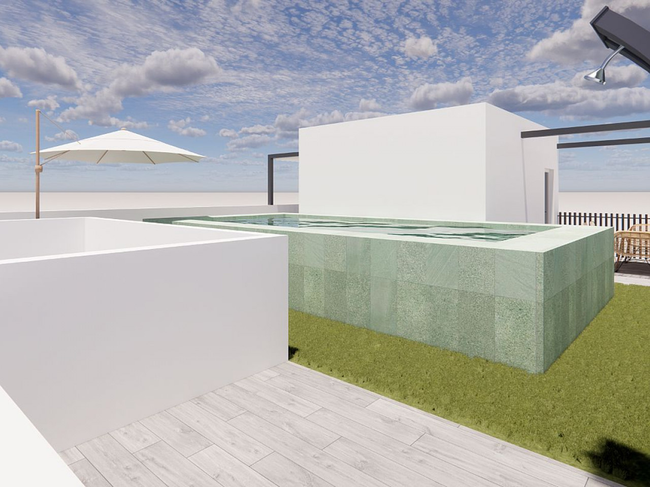 Išskirtinis šio projekto bruožas – bendras stogo soliarumas, į kurį galima patekti laiptais arba liftu. Gyventojai gali mėgautis stogo baseinu, lauko virtuvės zona, kepsnine ir valgomojo erdvėmis po pergolomis bei deginimosi zona su dirbtine žole. Ši išskirtinė stogo oazė – tobula vieta atsipalaiduoti po Ispanijos saule.