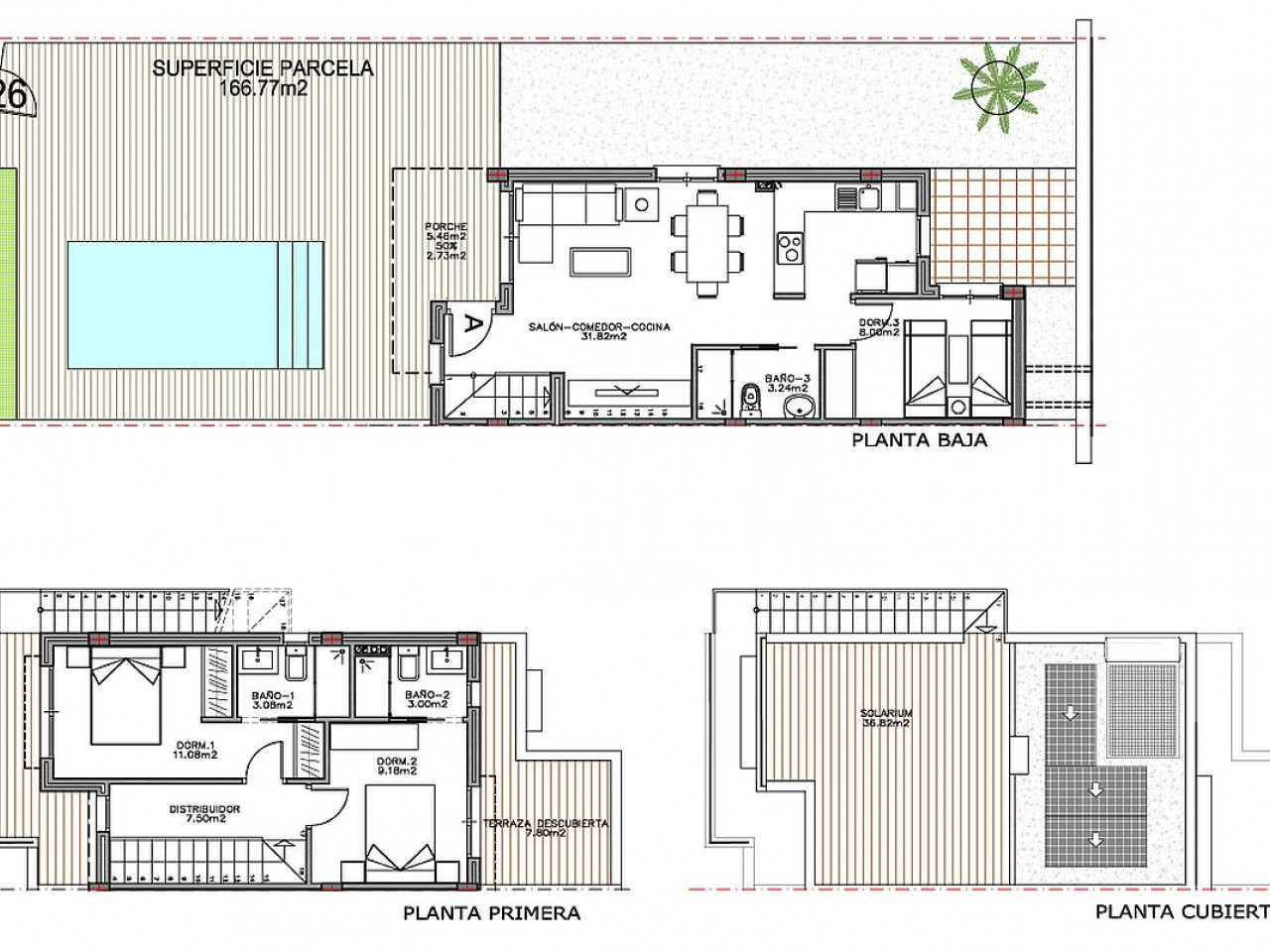 Puikūs nepriklausomi objektai, pasižymintys teisingu kainos ir kokybės santykiu, visi su atskiru sklypu su vieta automobiliui, privačiu 6 x 2,5 m baseinu. Pirmame aukšte yra didelė svetainė-valgomasis ir atvira virtuvė, 1 miegamasis su įmontuota spinta, 1 pilnas vonios kambarys ir dengta terasa.