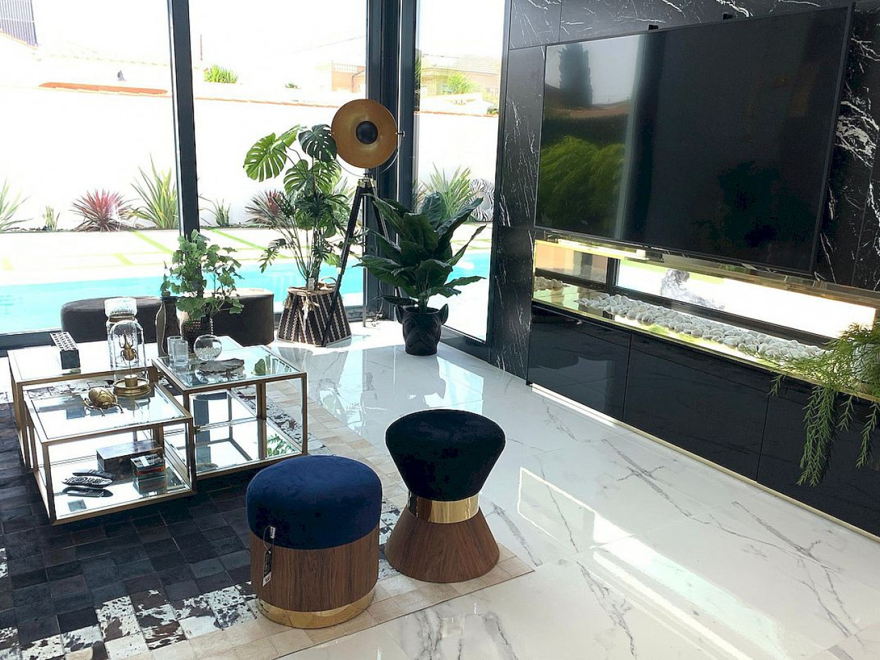 Šiame nekilnojamojo turto objekte yra trys dviguliai miegamieji, trys vonios kambariai, moderni, pilnai įrengta ir integruota virtuvė bei atviro plano svetainė su valgomojo zona, iš kurios patenkama į sodą su privačiu baseinu ir automobilių stovėjimo aikštele kieme.