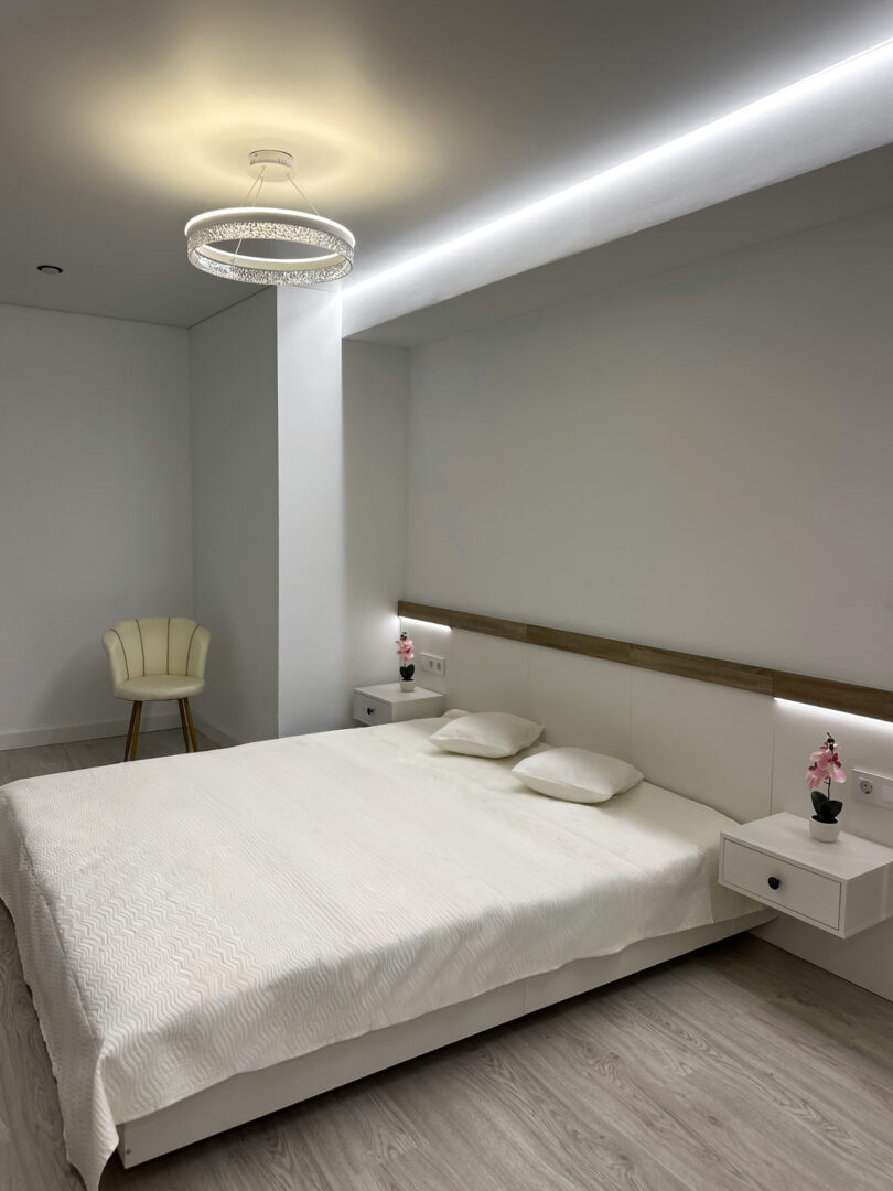 Butas siūlo du erdvius dvigulus miegamuosius, iš kurių pagrindinis turi nuosavą vonios kambarį, užtikrinantį dar daugiau komforto ir privatumo. Antrasis, taip pat pilnai atnaujintas vonios kambarys aptarnauja likusią buto dalį – abu kambariai įrengti šiuolaikiškai ir stilingai.