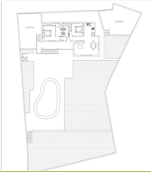 Sklypas visiškai aptvertas, su vartais ir automatiniu domofonu, valdomu nuotoliniu būdu.