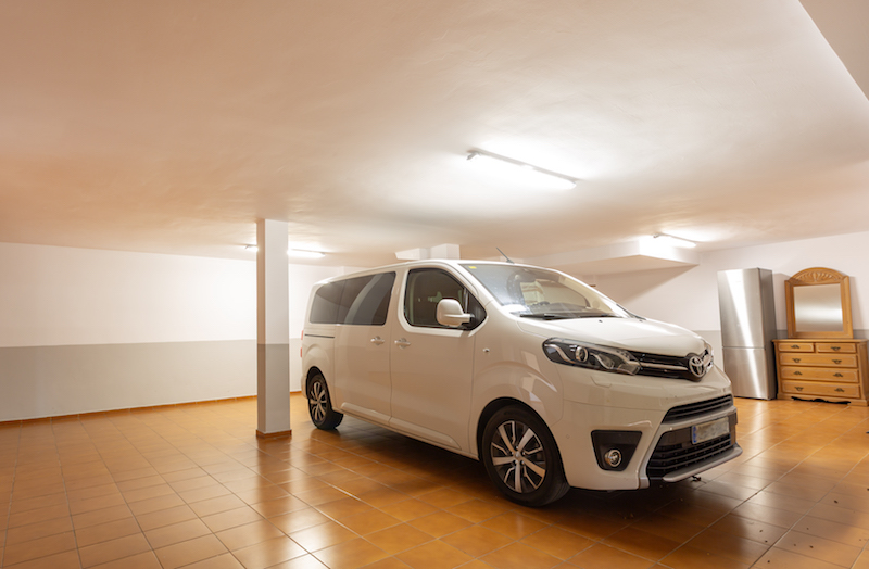Įvažiavus pro automatinius vartus, jus pasitiks platus asfaltuotas privažiavimas prie uždaro garažo durų, kuriame telpa daugiau nei 3 automobiliai, skalbykla ir vonios kambarys, kambarys jūsų pasirinkimui bei sandėliavimo patalpos – visos su langais į išorę ir tiesioginiu priėjimu laiptais į pagrindinį aukštą.