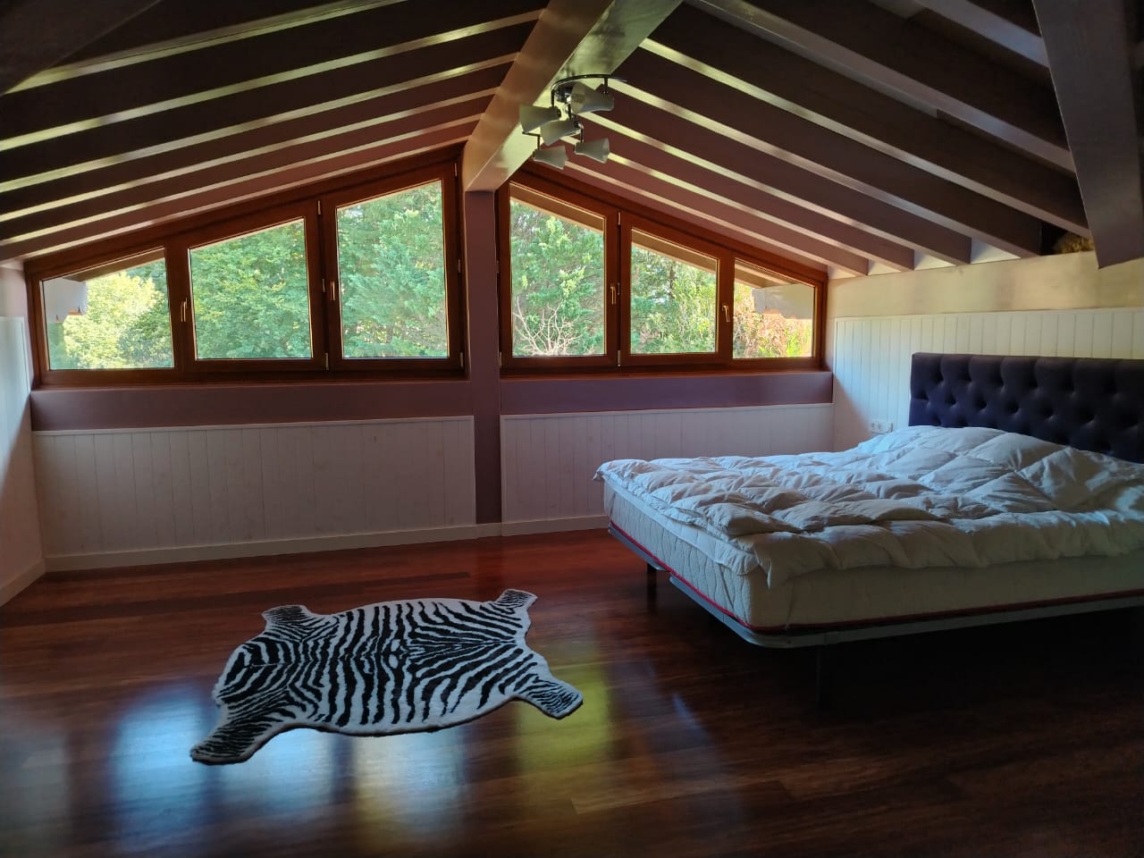 • Kintamas lubų aukštis pagal stogo nuolydį, sukuriantis jaukias erdves