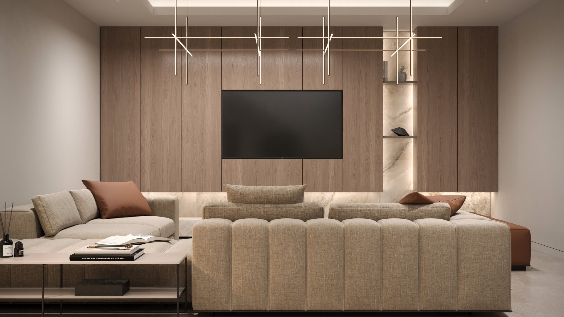 Ši vieno aukšto vila pasižymi šviesia ir erdvia atvira gyvenamąja erdve, kurioje integruota pilnai įrengta virtuvė, valgomasis ir svetainė su atskiru svečių tualetu. Dideli stikliniai langai atveria panoraminius vaizdus ir išėjimą į terasą su lauko virtuve, privačiu sodu ir baseinu.